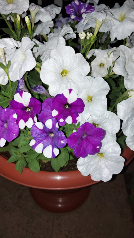 Впервые такой цвет у семенной петунии. Но в отличие от той, что только вегетативно размножается, куст у этой вытягивается, сильно "палкастый" сколько не стриги. В общем селекционерам здесь ещё есть над чем работать. В вазоне с "лавина белая" лучше смотрится. Но со стрижкой 2-3 раза за сезон.