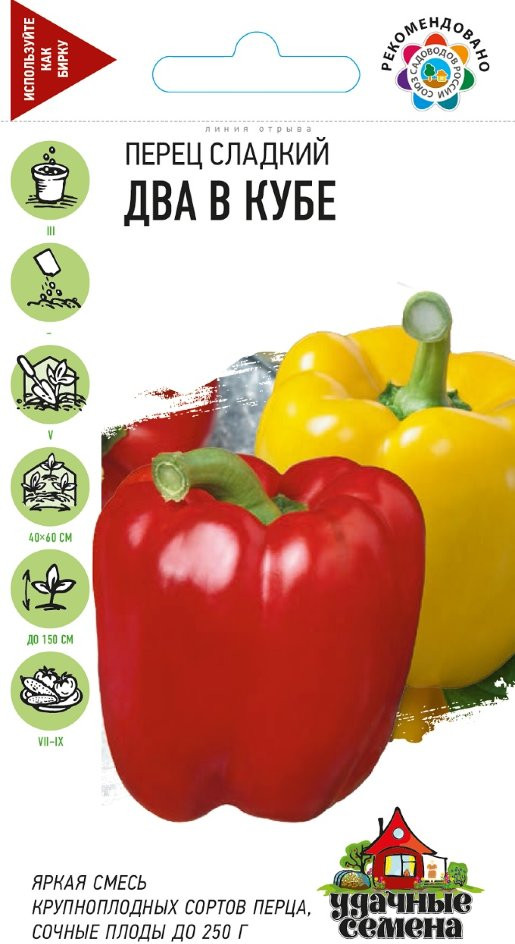 💳 Оплатить за товар можно при получении 🇰🇿 Есть бесплатная доставка по Казахстану от 1 дня 🎁 Копите бонусы с каждой покупки Серия: Удачные семена Очень яркая смесь сортов крупноплодного перца желтых и красных оттенков. Уже через 100-105 дней после появления всходов можно собирать сладкие, сочные плоды. Растение мощное, высотой до 150 см. Плоды крупные, кубовидной формы, диаметром 8-10 см, массой 200-250 г, с толстыми мясистыми стенками (6-7 мм). Рекомендуется для употребления в свежем виде, консервирования, замораживания, фарширования и запекания. Сорт устойчив к основным заболеваниям перца. Выращивают рассадным способом. Посев на рассаду — в марте. Высадка в теплицу — в мае. Рассаду пикируют в фазе 1-2 настоящих листьев. После высадки в теплицу у растений удаляют боковые побеги и листья до первой развилки и подвязывают к опоре. |