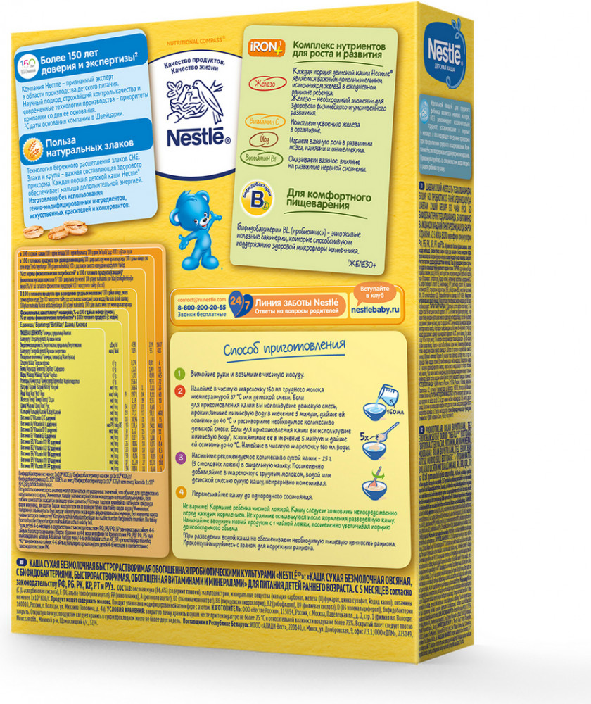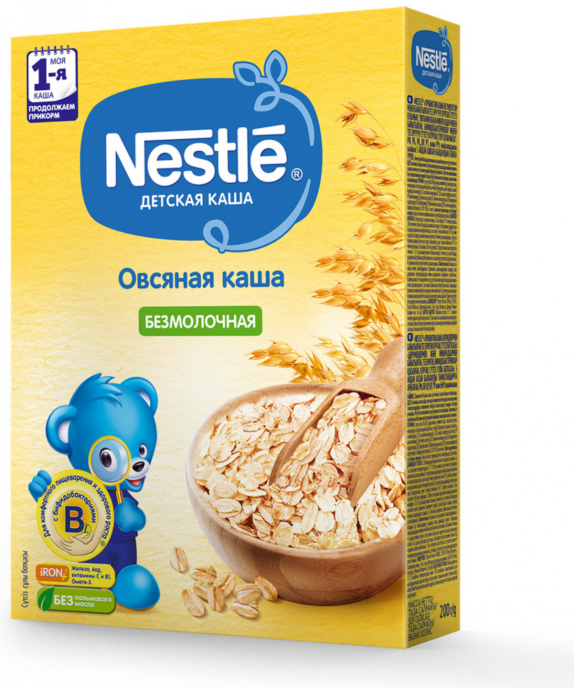 Nestle Каша овсяная безмолочнаяВ данный момент этот товар отсутствует в продаже. Возможно, у нас найдется аналогичный или похожий товар здесь. Nestlé каша овсяная безмолочная для питания детей старше 5 месяцев. |