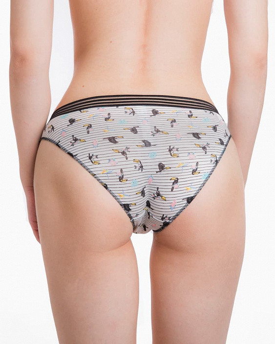 Похоже, производитель поменял резинку у этого артикула на сплошную плотную или же фото в описании товара — от другой модели. Когда-то я в обычном магазине Марк Формель покупала трусы именно с такой полупрозрачной полосатой резинкой. Конечно, какой тогда был артикул на этикетке, я не запомнила, а сейчас эти купила именно потому, что ожидала получить такую же модель. Но качество белья МФ обычно хорошее у любых моделей, размерный ряд соответствует, так что оставила, тем более, что купила со скидкой по приятной цене