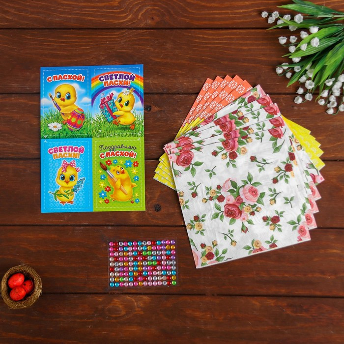 Красивые салфетки, у стразов пленка снимается с клеем, рисунки большие, неудобно украшать ими яйца.