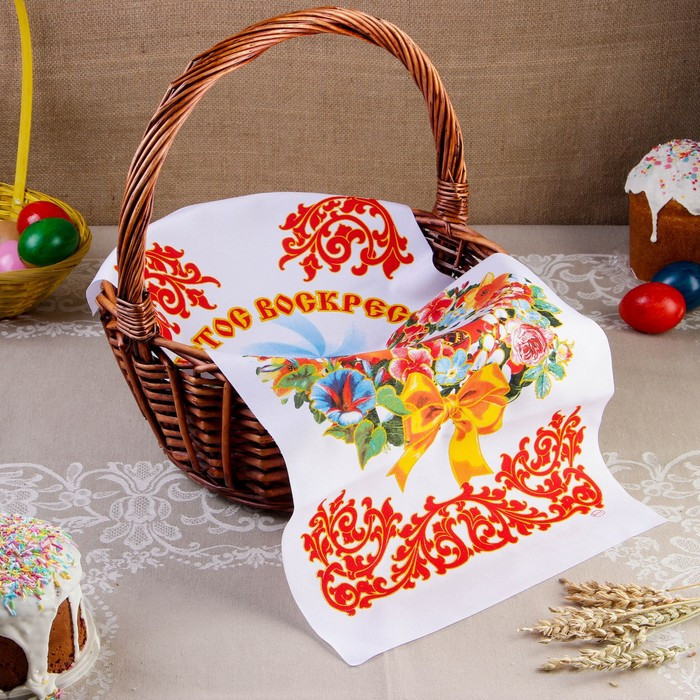 рушник служит для накрывания куличей в корзине.,когда носим в Церковь освещать их.Или для украшения икон(просто сверху накинуть на икону)