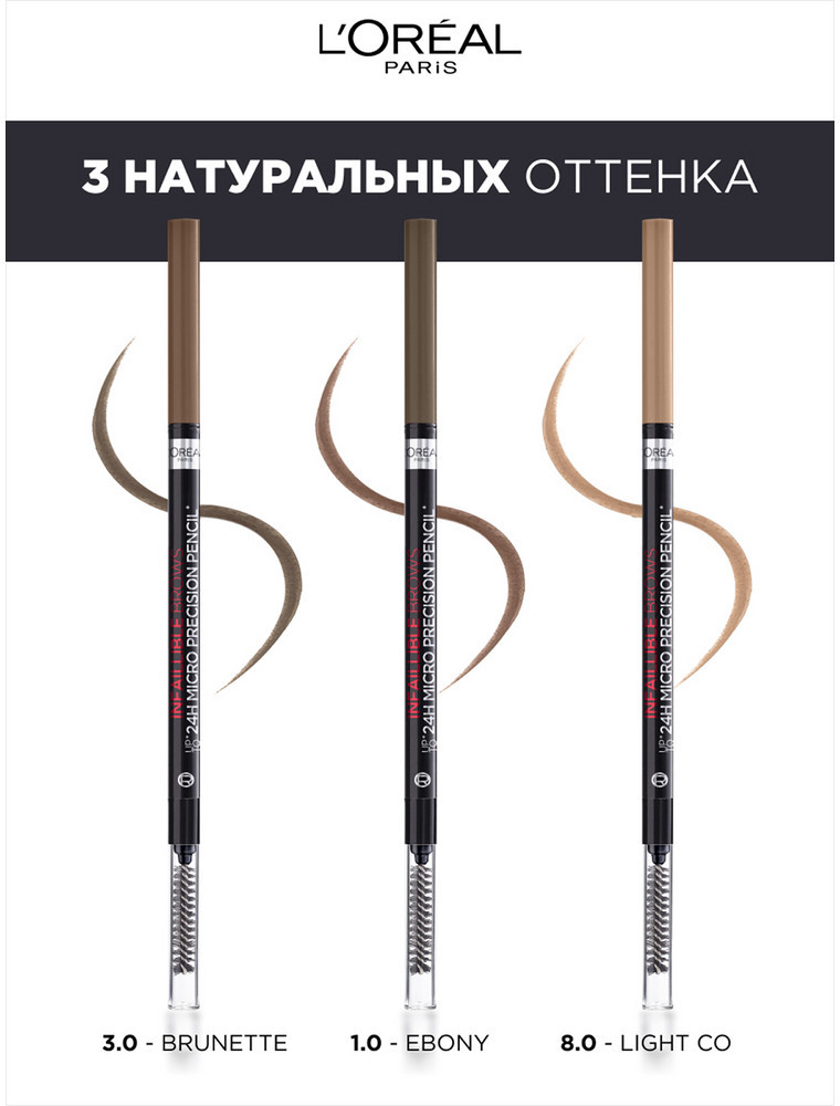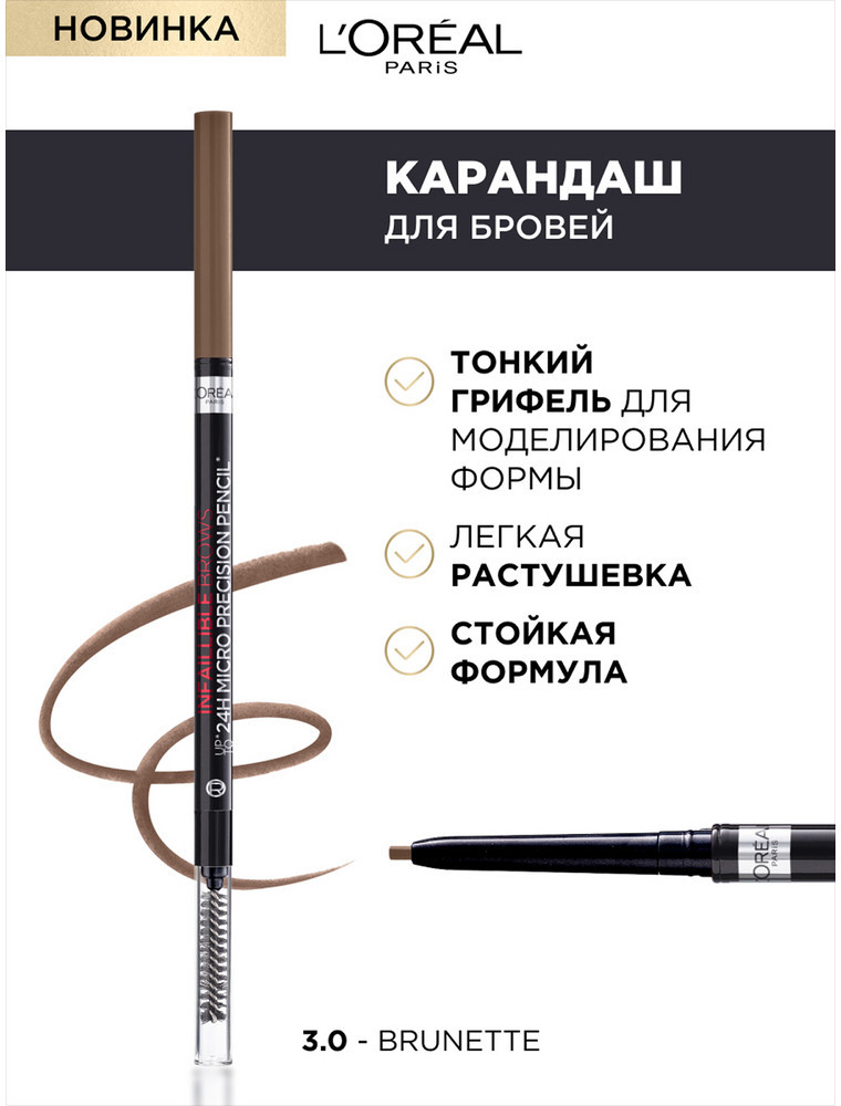 L'Oreal Paris Автоматический ультратонкий карандаш для бровей «Infaillible Brows», оттенок 3.0