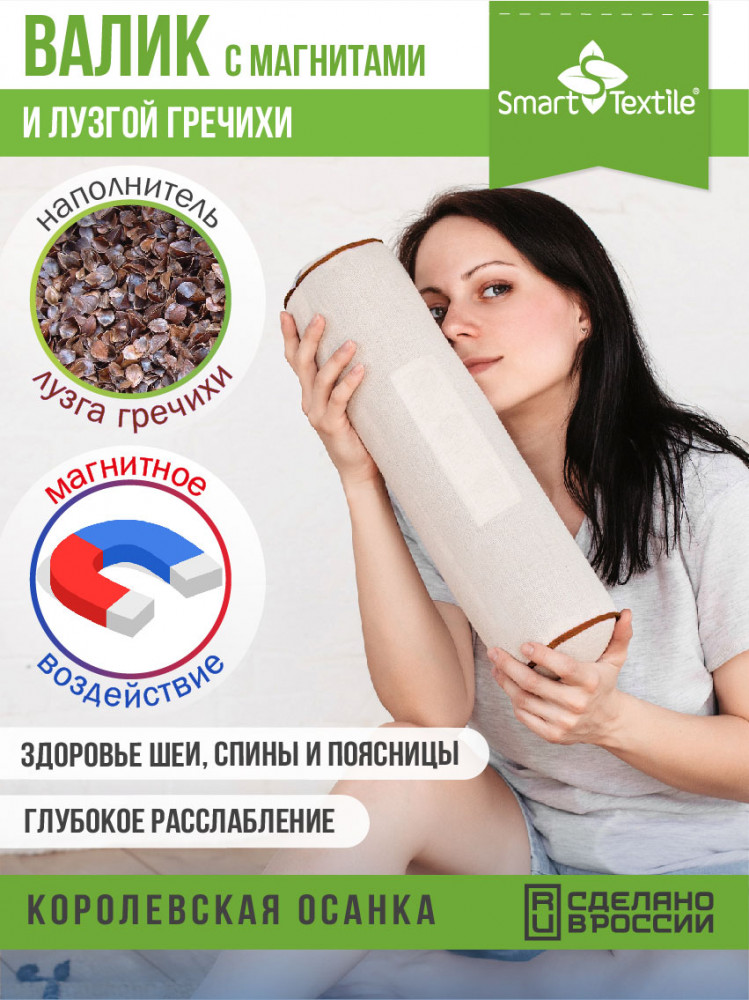 | Smart Textile Подушка-валик с лузгой гречихи и магнитами «Притяжение»+103 (бонуса)