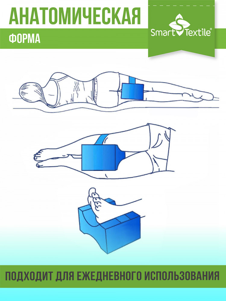 Ранее спала с обычной подушкой м/у ног, но во время сна подушка падала. Но благодаря фиксации подушка на месте и удобнее спать. Благодарю выемке для ног Иногда применяю под голову.