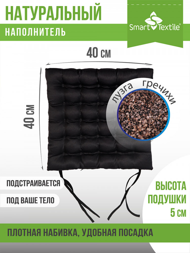 Smart Textile Подушка на сиденье с завязками «Уют» (лузга гречихи, 40×40)