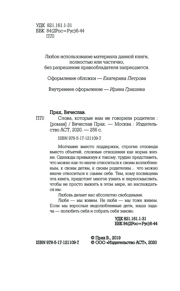 💳 Оплатить за товар можно при получении 🇰🇿 Есть бесплатная доставка по Казахстану 🎁 Копите бонусы с каждой покупки Серия: Легенда русского Интернета Молчание вместо поддержки, строгие отповеди вместо объятий, сложные отношения как норма жизни. Однажды привыкнув к такому, трудно представить, что можно как-то иначе относиться к своим возлюбленным, к своим детям, к своим родителям... что можно иначе относиться к самим себе. |