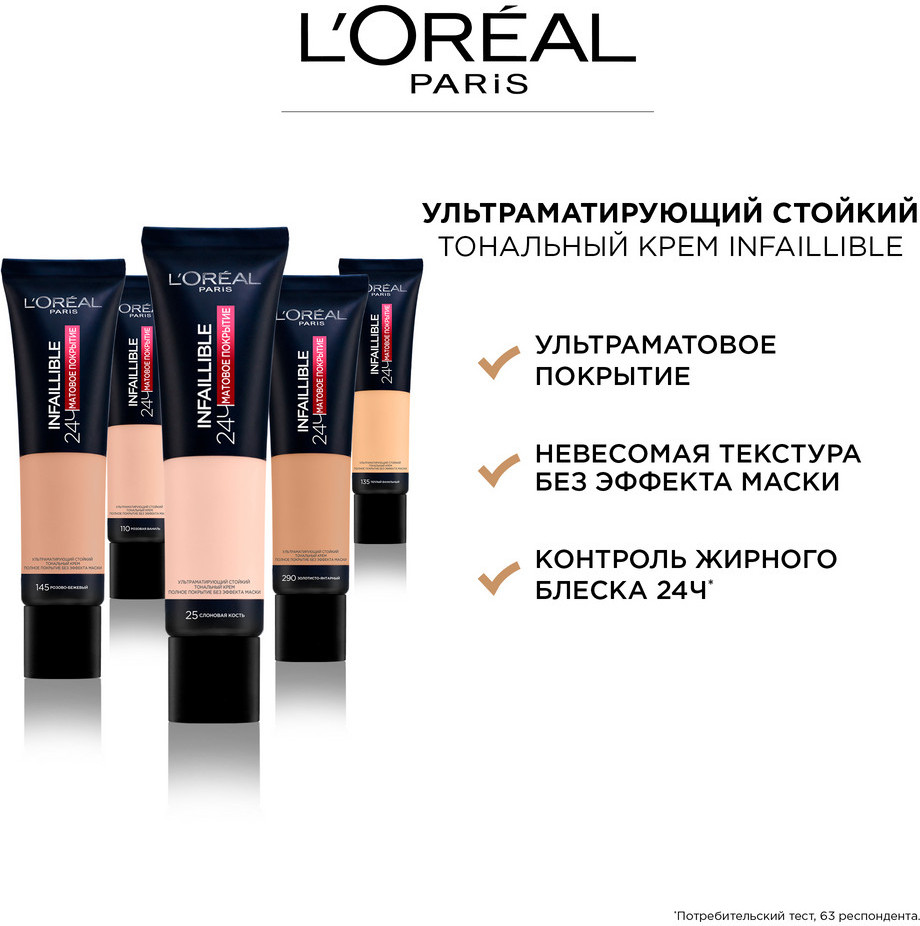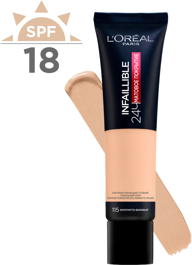L'Oreal Paris Ультраматирующий стойкий тональный крем «Infaillible 24ч матовое покрытие», оттенок 115
