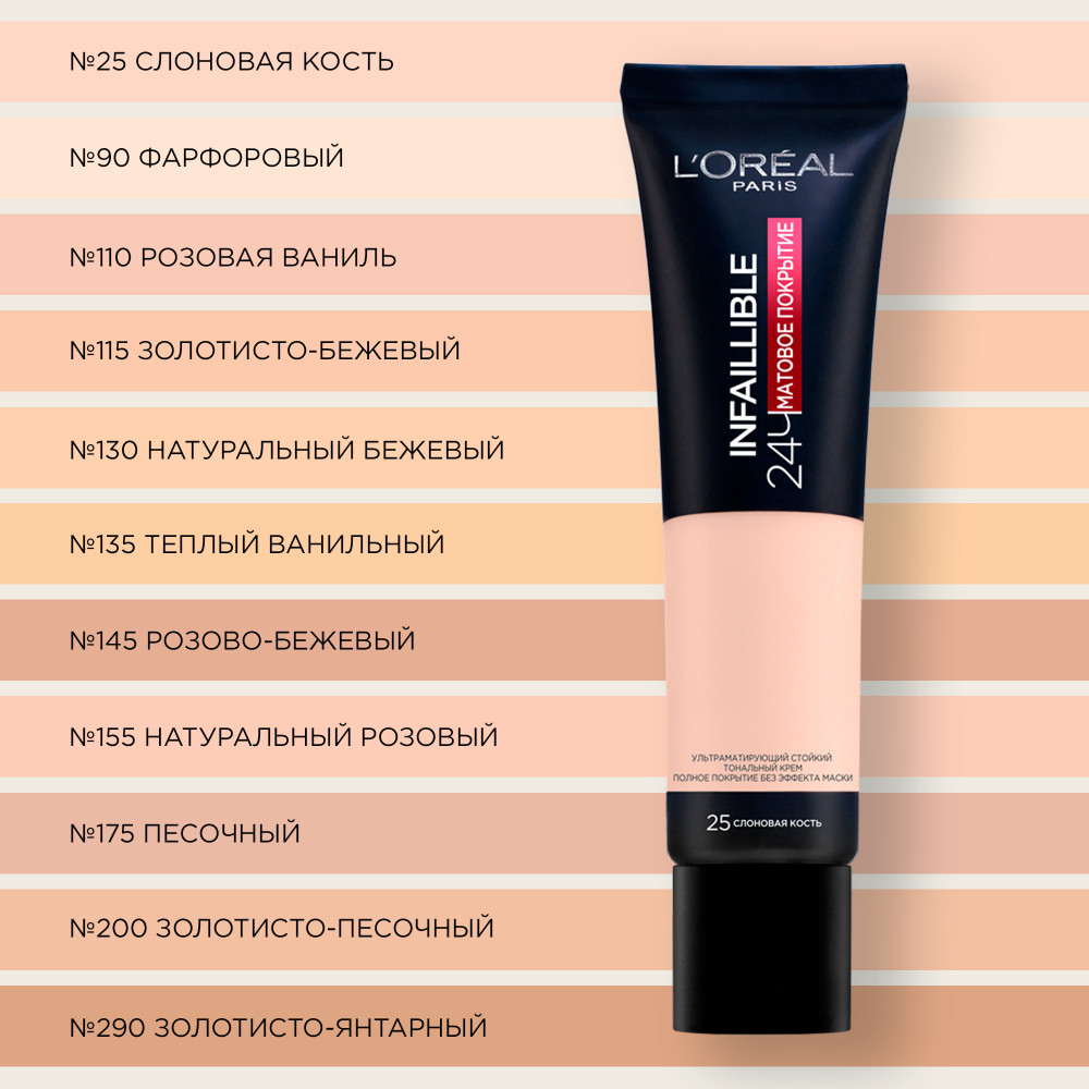 L'Oreal Paris Ультраматирующий стойкий тональный крем «Infaillible 24ч матовое покрытие», оттенок 145