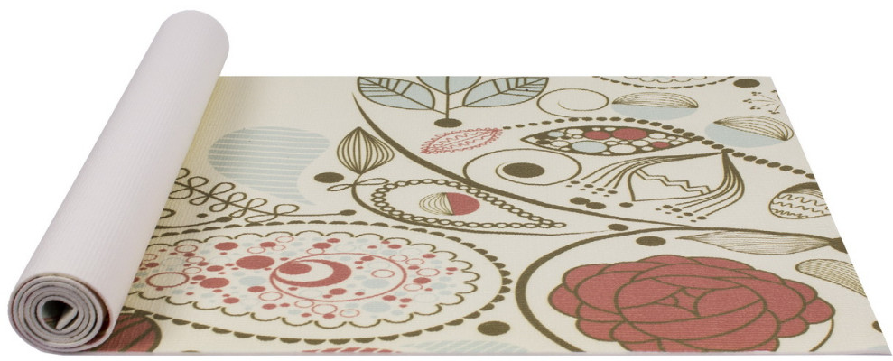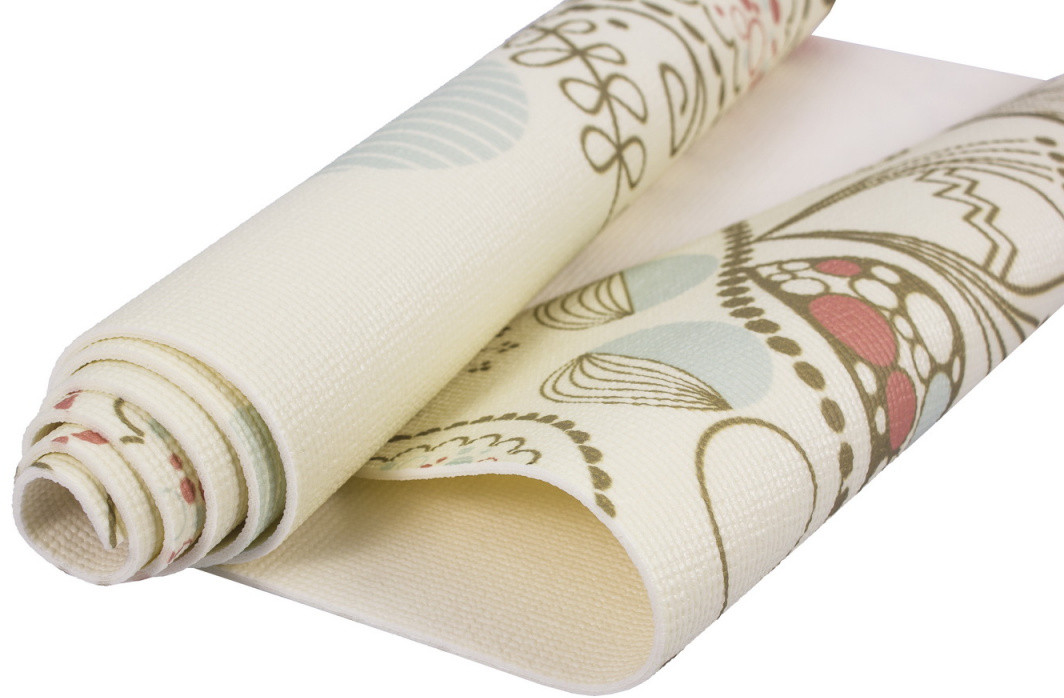 Брала коврик с цветочком. Мягкий, не скользит. Удобно заниматься. Запах сильный был сначала. Через неделю примерно выветрился.