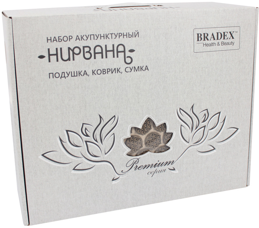 Акупунктурный набор премиум-качества отличается большей функциональностью и полностью натуральными материалами. Набор включает в себя массажный коврик, подушку и сумку. Таким образом, его элементы удобно использовать вместе или отдельно, сложить в сумку и взять с собой. «Цветы жизни» — шипы уникальной формы — позволяют сделать массаж более приятным и комфортным.