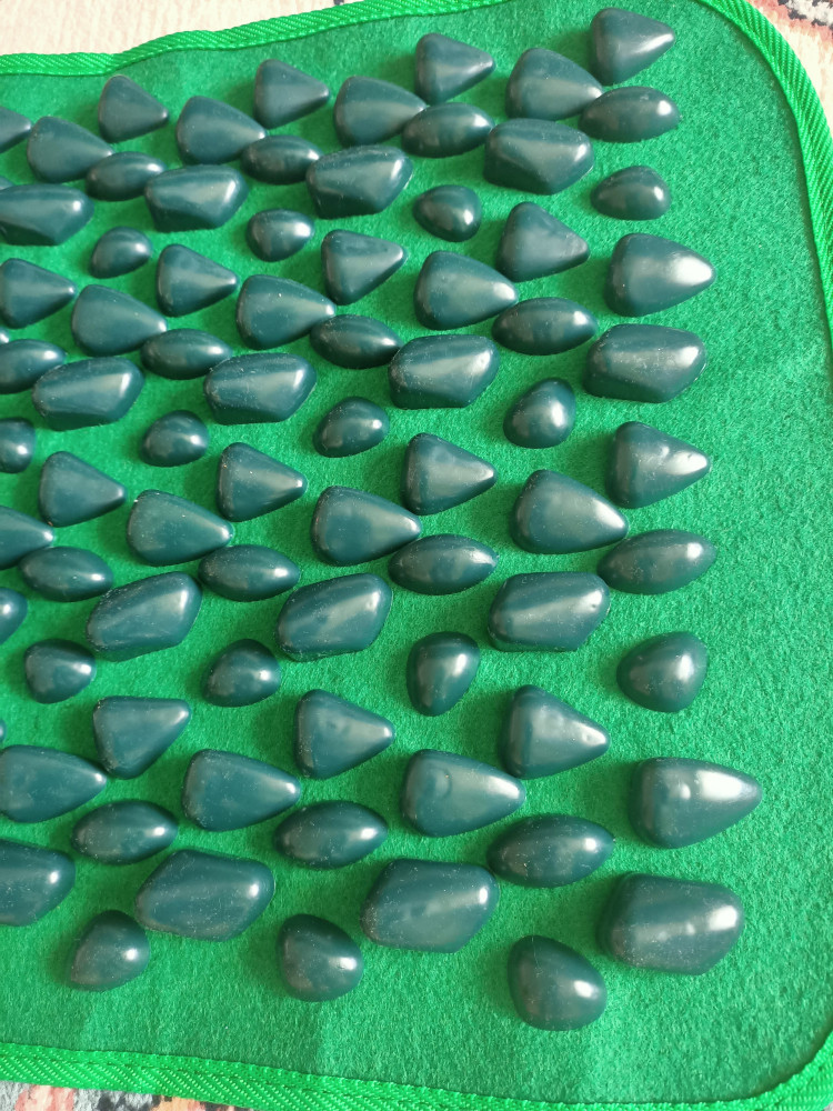 Покупкой довольна! Достаточно длинный, взрослому почти в полный рост можно лечь, "камешки" пластиковые, качественные, действительно напоминает гальку, ногам нужно привыкнуть по ней ходить, т.к. очень выпуклые)), лежать и прокатывать спину вообще супер!