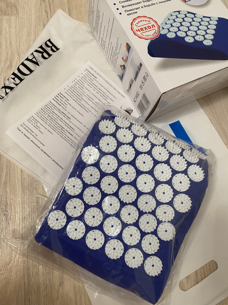 Купила в комплект к уже имеющимся коврику-аппликатору Кузнецова (советского производства). Щипы выполнены из твердого пластика, жесткие, надежно прикреплены. Вот только наполнитель по мне мягкий, недостаточно плотный (за это сняла одну звезду), из-за чего щипы недолго впиваются в кожу. На обратной стороне подушки есть молния, можно снять и постирать, или заменить наполнитель при необходимости. Рекомендую, потому что очень полезная, действенная вещь