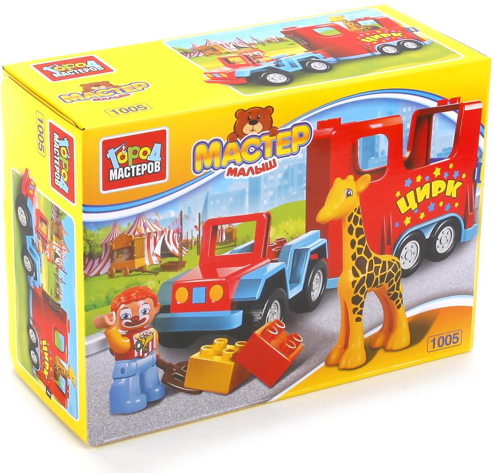 Город мастеров Конструктор «Машинка с жирафом»В данный момент этот товар отсутствует в продаже. Возможно, у нас найдется аналогичный или похожий товар здесь. Серия: Мастер малыш Конструктор совмещает в себе две функции: ребёнок строит цирковой грузовик и играет с ним, моделируя разные сюжеты. В наборе представлено 10 деталей ярких цветов, окрашенных стойкими к истиранию безопасными красителями и оснащённых удобными блочными креплениями. В набор входят фигурки жирафа и клоуна, которые делают игру интереснее и реалистичнее. Конструктор сделан из прочного, безопасного, яркого пластика. Развивает фантазию, усидчивость и мелкую моторику рук. |