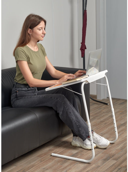 Очень удобный столик. Можно работать с ноутбуком, сидя на диване или в кресле, не скрючиваясь при этом в 3 погибели. Он легкий и регулируется по высоте и углу. Можно настроить для взрослого и для ребёнка. Пластиковую столешницу можно помыть. Универсальная вещь- и поработать можно, и поесть, и порисовать. Конструкция, конечно, не рассчитана на тяжёлые условия работы, но для этого есть рабочий стол.