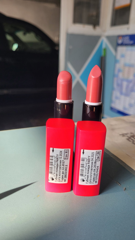 Хорошие , бюджетные помады. Губы не сушат, хорошо распределяются, не скатываются, не забивают морщинки на губах, лежат ровно. Цвет на фото несколько отличается от реального, не такой яркий, более нежный. Верхняя губа покрыта 60 (нежно розовый) наверное подойдёт блондинкам для дневного макияжа. На нижней губе номер 39 (пион) много блёсток, и слишком розовая. Помнится в молодости в 90х о такой мечтала. Губы прям сияют, подойдёт для вечернего макияжа. Можно наносить на помаду другого цвета для блеска. Если наносить эти помады на бальзам для губ, держатся дольше. У помады номер 39 приятный, нежный, сладковатый аромат. Запах помады 60 мне не понравился, пахнет прогорклым жиром.