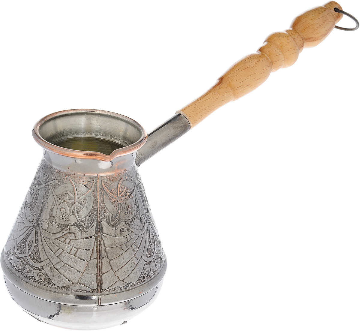 💳 Оплатить за товар можно при получении 🇰🇿 Есть бесплатная доставка по Казахстану от 1 дня 🎁 Копите бонусы с каждой покупки Турка «Станица» предназначена для приготовления натурального кофе. Изготовлена из высококачественной кованой меди. Внешние стенки декорированы красивым рельефным орнаментом. Внутри турка покрыта пищевым оловом. Изделие имеет узкое горлышко и специальный носик. Рукоятка выполнена из дерева и снабжена металлическим кольцом, благодаря которому изделие можно подвесить на крючок. Кофе в турке варится очень просто. Насыпьте молотый кофе, залейте водой и варите на слабом огне, не доводя до кипения. Чем дольше кофе варить, тем крепче он становится. |