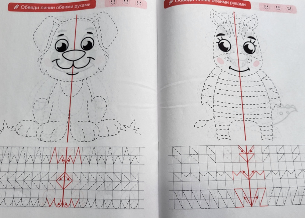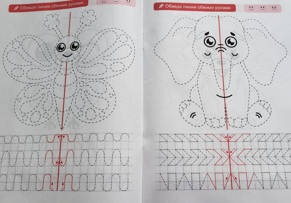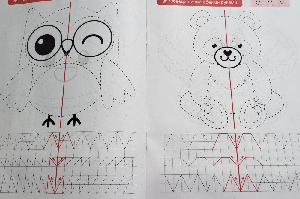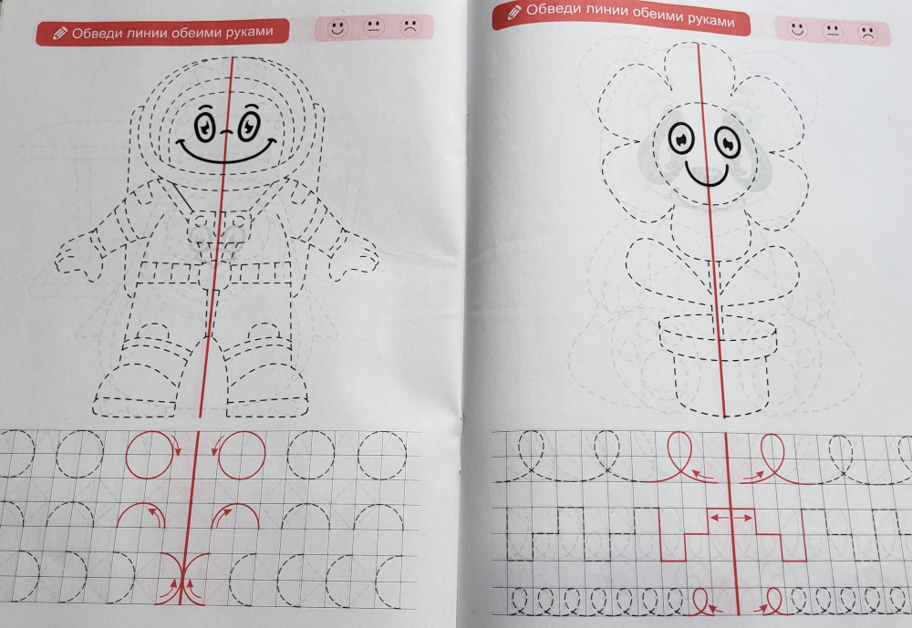 Отличная пропись, было интересно одновременно работать двумя руками, даже сама попробовала, тренировка для мозга отличная.