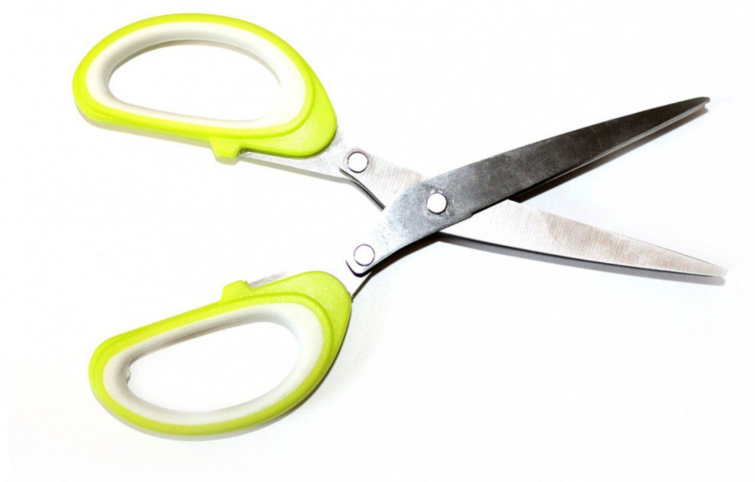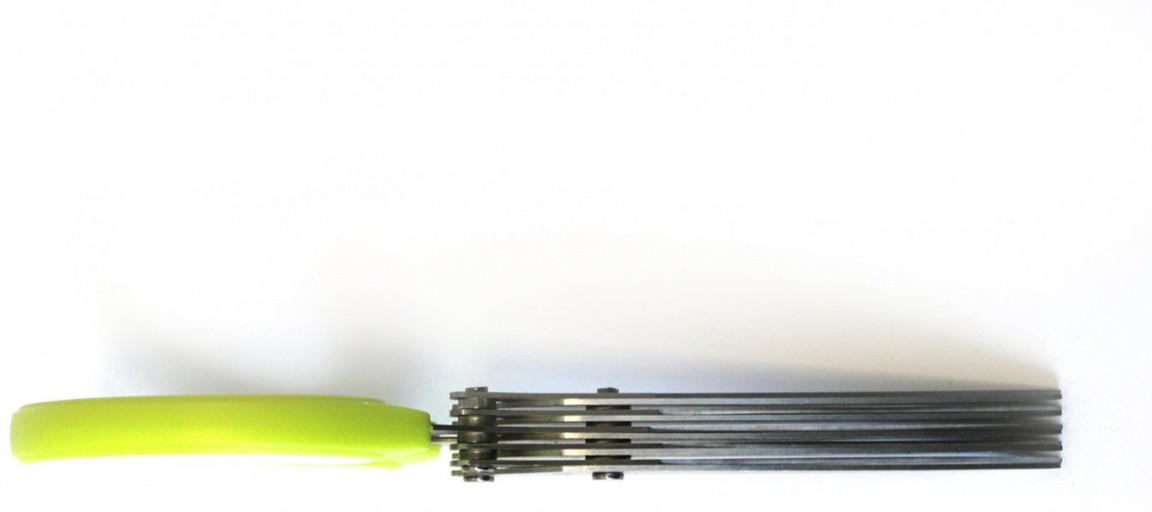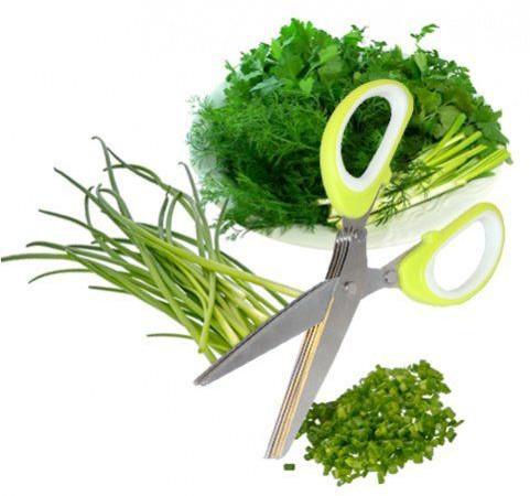 Мне понравилась ножница. Одним разом режет зелень. На салат сверху режешь и готова, не надо ни досочка, ни ножа. Можно и зеленый луг , укроп, петрушку можно резать. Есть щетка дополнительно, можно им остатки зелени встряхнуть. И моется под струи воды без проблем. Можно экономить уйму времени. Рекомендую, берите и не пожалеете.
