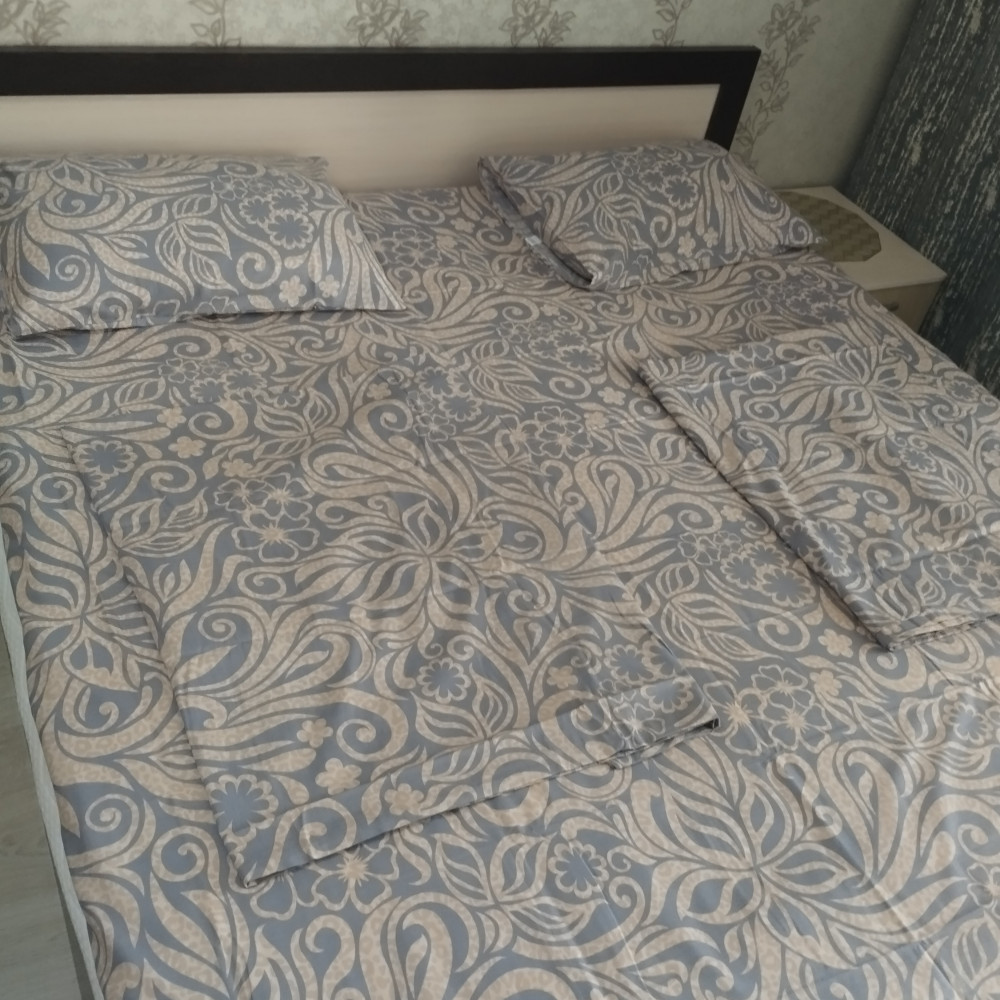 Расцветка немного пестрая, ткань тонковата для бязи, но и за эту сумму семейный комплект почти даром🙌 Для нашей кровати 180/200 простынь отлично подошла.