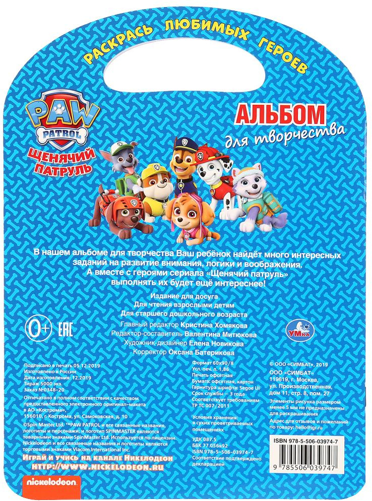 Альбом для творчества с удобной ручкой «Щенячий патруль» ТМ «УМка» — раскрась любимых героев: