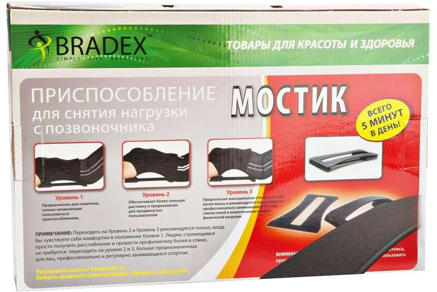 Bradex Приспособление для снятия нагрузки с позвоночника «Мостик»В данный момент этот товар отсутствует в продаже. Возможно, у нас найдется аналогичный или похожий товар здесь. Известно, что около 90% заболеваний внутренних органов напрямую связаны с болезнями позвоночника. Но в современном мире при динамичном ритме жизни крайне тяжело выкроить время для занятий собой и своей спиной. Тем не менее, каждый день мы подвергаем наши позвоночники сильным перманентным нагрузкам, а также из-за статичности сидячей работы происходит застой позвонков, что провоцирует многие заболевания. |