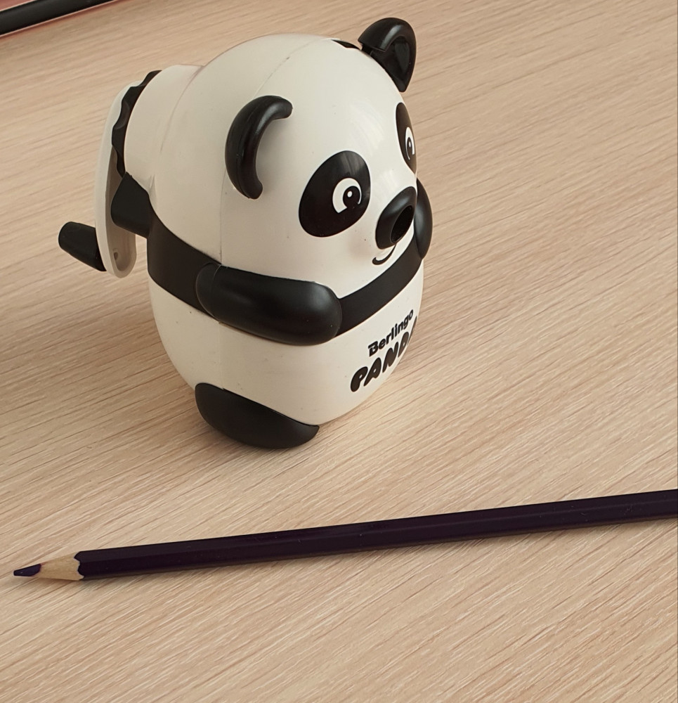 Точилка классная, оригинальная и необычная! В животик панды высыпаются опилки и легко можно выкинуть их, открыв его, а карандаш вставляется в носик и нужно немного ушко сдвинуть, чтобы он зафиксировался. Прекрасно точит карандаши, и теперь дочка с удовольствием это делает!