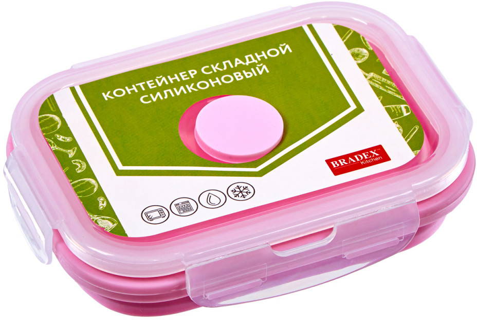 Берете домашние обеды на работу или учебу? Складной контейнер с клапаном перевернет ваше представление о ланчбоксах! Для изготовления используются современные безопасные материалы, которые не изменяют свойств и вкуса продуктов. Контейнеры подходят для микроволновой печи: просто откройте клапан, не снимая крышку, и обед хорошо прогреется, оставив стенки СВЧ-печи чистыми. После использования вы можете легко сложить силиконовый контейнер и убрать его в сумку — в сложенном виде его высота составляет всего 3 см.