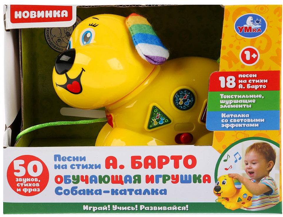 УМка Игрушка-каталка обучающая «Собака»В данный момент этот товар отсутствует в продаже. Возможно, у нас найдется аналогичный или похожий товар здесь. Ваш малыш мечтает о собственном питомце? Порадуйте его таким замечательным подарком. Дети придут в восторг от такого умного, говорящего и поющего песика! |