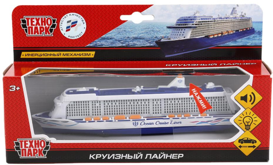 Технопарк Лайнер круизныйВ данный момент этот товар отсутствует в продаже. Возможно, у нас найдется аналогичный или похожий товар здесь. Лайнер выполнен из качественного материала, который не подвергается внешнему воздействию. Окрашен стойким, безопасным для детей составом. Оснащён инерционным механизмом: если поставить его на ровную поверхность, потянуть за корпус и отпустить, то он поедет сам. Внутри установлены звуковой и световой модули. |