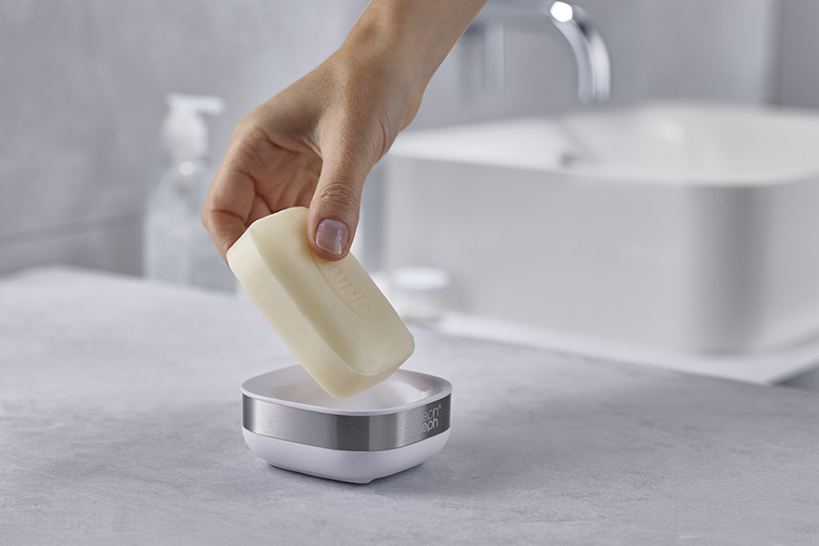 Мыло размещается в ней не горизонтально, а под углом, благодаря чему излишки воды стекают в специальное отверстие и его поверхность быстро высыхает. Мыло будет дольше служить и при этом оставаться в хорошем состоянии.