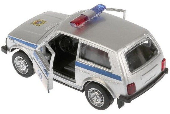 • дизайн автомобиля исполнен в полицейской тематике, поэтому борта украшены синими полосами со специализированными надписями «полиция 02» . На крыше установлены сигнальные маячки;