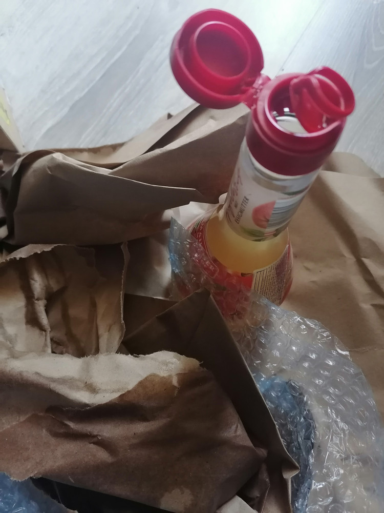 Уксус пришёл почему-то со вскрытой наполовину защитой,содержимое немного вытекло. Спасибо упаковщиком, обернули все добротно, поэтому остальное содержимое коробки не пострадало. Вкус приятный, рискнула все таки его попробовать