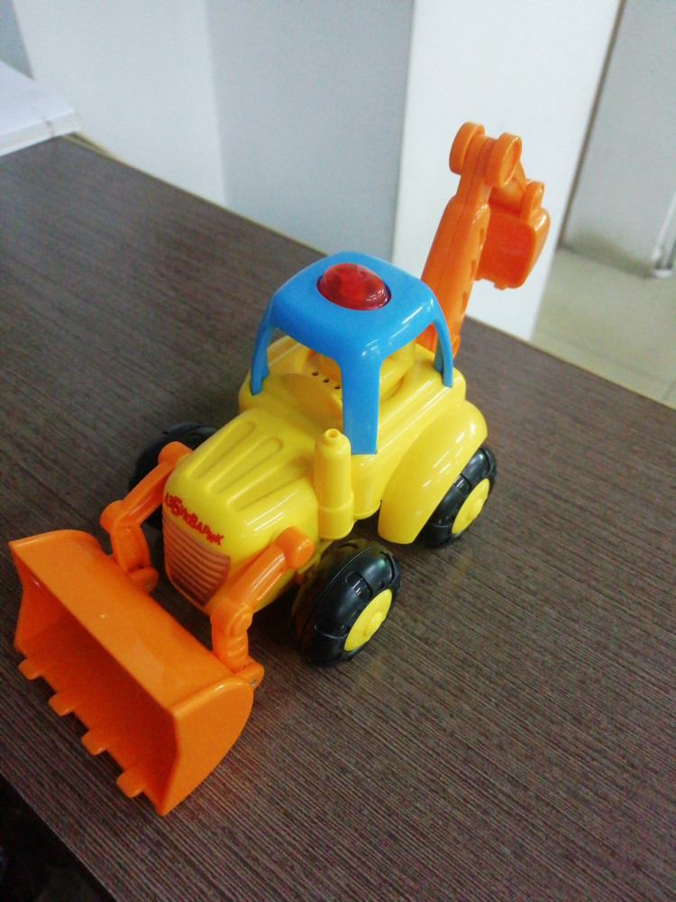 Заказала для сыночка, ему 9 месяцев. Маленький, удобный бульдозер. При нажатии на колеса играет приятная музыка.
