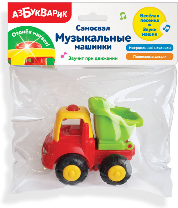 💳 Оплатить за товар можно при получении 🇰🇿 Есть бесплатная доставка по Казахстану от 1 дня 🎁 Копите бонусы с каждой покупки Серия: Музыкальные машинки Забавный разноцветный самосвал ездит, мигает огоньками, проигрывает веселую песенку и задорно «бибикает». Музыка и световые эффекты включаются при движении, а слова песенки помогут крохе быстро выучить счет до пяти. Поставьте игрушку на пол, включите, и ребенок будет с большим удовольствием ползать за веселой машинкой, которая ездит благодаря работе инерционного механизма. У самосвала есть подвижный кузов — малыш это обязательно оценит! |