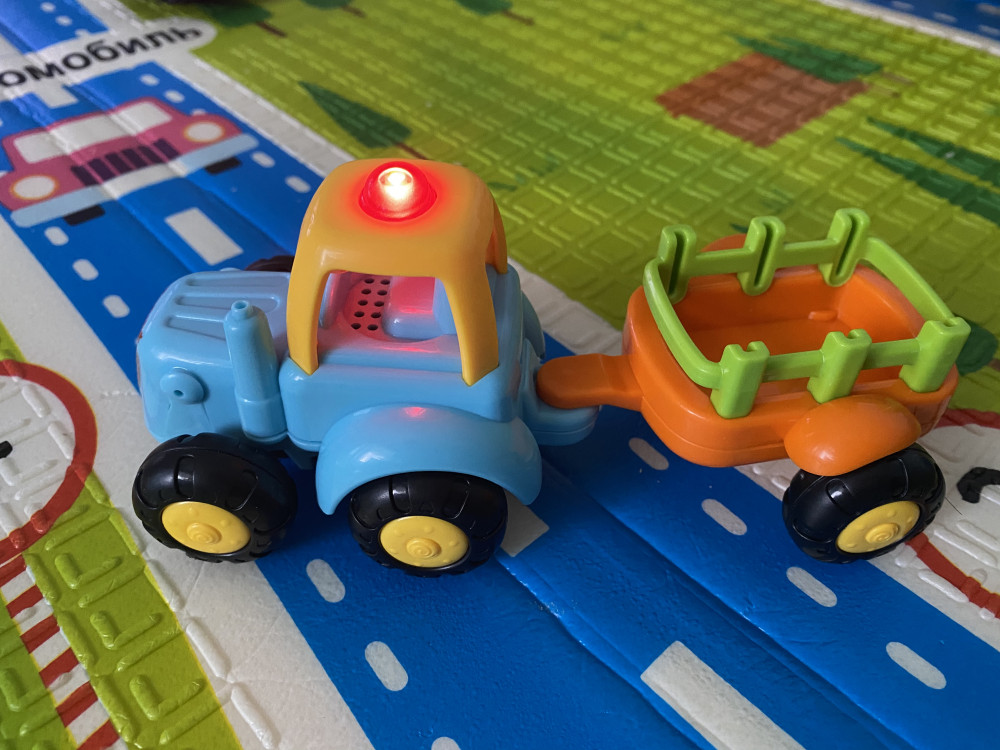 Классный трактор небольшого размера. Качество отличное , музыка играет . Ребёнок доволен