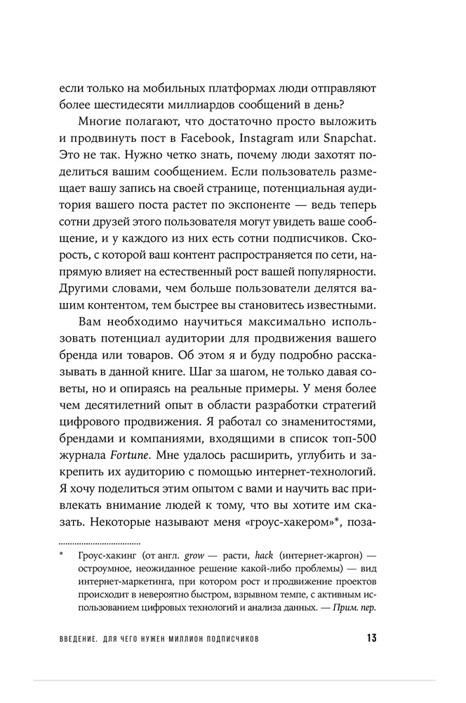 Миллион подписчиков. Как раскрутить ваш аккаунт за 30 днейВ данный момент этот товар отсутствует в продаже. Возможно, у нас найдется аналогичный или похожий товар здесь. Подойдут ли идеи и инструменты, которые работают при продвижении аккаунтов звезд, тем, кто начинает с нуля? Сможет ли человек, никогда не появлявшийся на телевидении, в кино или в СМИ, собрать миллионы подписчиков по всему миру? Чтобы это проверить, Брендан провел эксперимент — попробовал раскрутить свой собственный аккаунт. Меньше чем за месяц у него было уже больше миллиона подписчиков из более чем ста стран. |