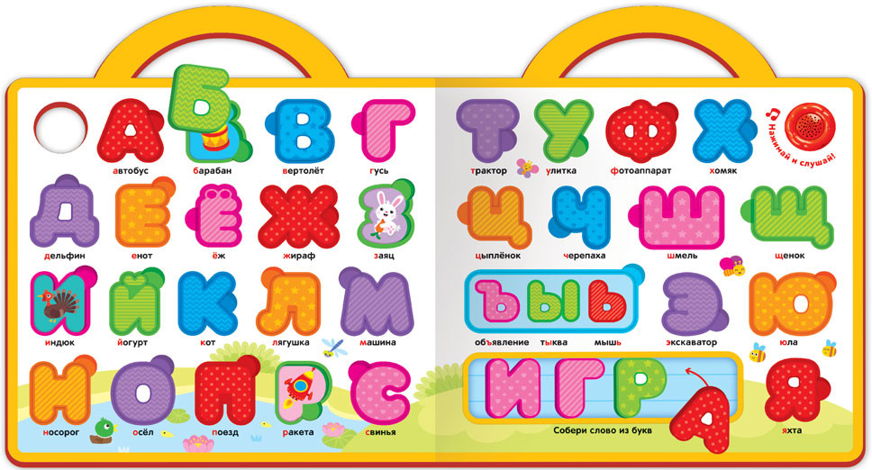 Классный букварик чтоб учить буквы яркий красочный и буквы мягкие и ребенку нравится ходить с "сумочкой".