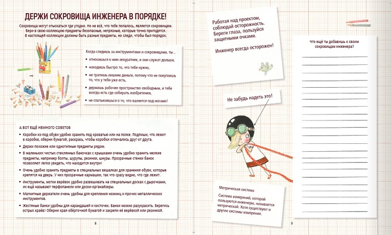 Вдохновить на решение проблем. Развить настойчивость. Воспитать позитивное отношение к неудачам. Более 40 заданий и задачек! Проекты на самые разные темы и очень интересные для любопытных юных читателей. С этой (большой!) книгой проектов и вместе с Розой Риверой (которая очень хочет стать инженером!) надо придумывать решение проблем (серьезных и смешных), устраивать мозговой штурм и набрасывать идею за идеей, рисовать свои изобретения, строить (простые и сложные) механизмы и сооружения и не бояться ошибок!