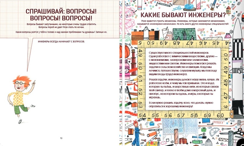«Роза Ривера, инженер», книга, которая легла в основу этой книги проектов, стала буквально книгой номер один в такой интересной теме, как инженерная специальность для детей, и книгой номер один в теме, как помочь преодолеть у детей состояние «у-меня-ничего-не-получается-и-уже-никогда-не-получится». В большой книге проектов Розы Риверы Андеа Бети и Дэвид Робертс сделали акцент на работе инженера: как появляется идея что-то соорудить, как приходят на ум разные способы воплощения идеи, как делается пробная модель, как проверить, все ли получилось как надо, и как, не смущаясь неудач, пытаться исправить то, что не получилось.
