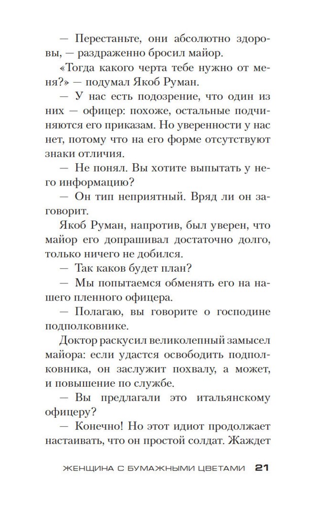 💳 Оплатить за товар можно при получении 🇰🇿 Есть бесплатная доставка по Казахстану 🎁 Копите бонусы с каждой покупки Серия: Звезды мирового детектива (обложка) Гора Фумо в итальянских Альпах, превратившаяся в ледяной собор, стала театром решающего сражения холодной весны 1916 года. Но эхо боевых действий не проникает в пещеру, где друг против друга сидят эти двое. Они курят и молчат. Один — пленный, который будет расстрелян на рассвете, если не назовет свое имя и звание. Другой — военный врач, у которого есть лишь эта ночь, чтобы убедить узника заговорить. Врач еще не знает, что рассказ пленного навсегда изменит его собственную судьбу. Потому что жизни этих людей, которые должны быть врагами, на самом деле связаны между собой. |