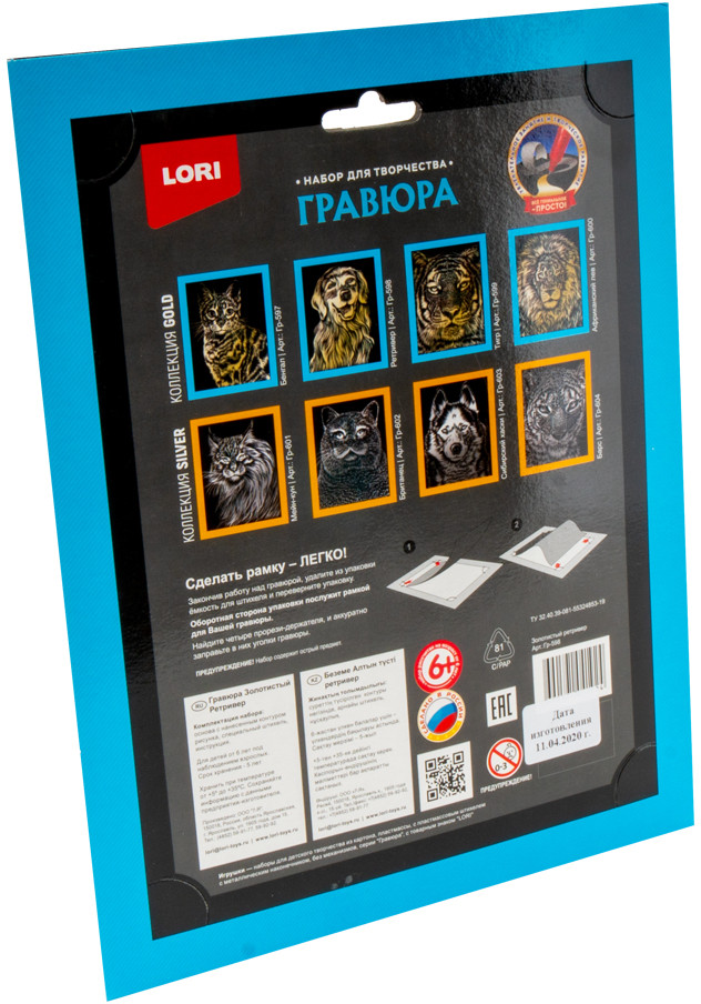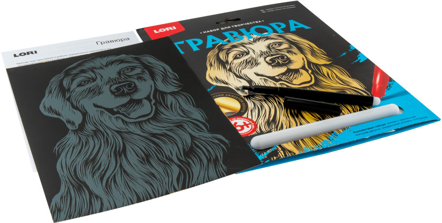 Lori Гравюра с эффектом золота «Золотистый ретривер»В данный момент этот товар отсутствует в продаже. Возможно, у нас найдется аналогичный или похожий товар здесь. Гравюра — особый вид графического искусства. С гравюрой ребёнок может самостоятельно создать настоящее произведение искусства и почувствовать себя гравером. Контур изображения уже нанесен на черный фон. С помощью штихеля изображение процарапывается по контуру, и из-под слоя краски появляется блестящая основа. В результате получается контрастный рисунок с эффектным изображением. |