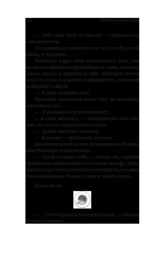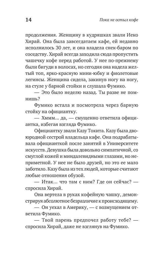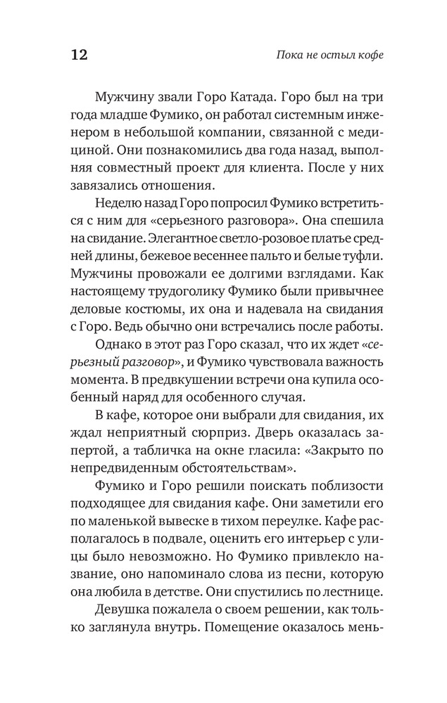 Пока не остыл кофеВ данный момент этот товар отсутствует в продаже. Возможно, у нас найдется аналогичный или похожий товар здесь. Вы когда-нибудь хотели вернуться в прошлое? Чтобы подобрать другие слова для важного разговора? Чтобы принять верное решение? Чтобы просто побыть с дорогим человеком? Городская легенда гласит, в одном японском кафе посетителям дарят такую возможность. Однако следует соблюдать пять обязательных правил. Главные из них — что бы вы ни сделали в прошлом, настоящее не изменится, вы должны успеть вернуться, пока не остыл ваш кофе. В Японии было продано более 950 000 экземпляров этой книги, ее перевели на 14 языков и экранизировали. Сотни тысяч читателей по всему миру присоединились к героям Тосикадзу Кавагути в их волшебных путешествиях. Невероятно трогательные истории о четырех чудесах, произошедших в маленьком кафе, заставят острее почувствовать каждый момент жизни и откроют возможности перемен в любой ее точке. Вы увидите, даже если мы не можем изменить прошлое, возвращение к нему может изменить нас. |
