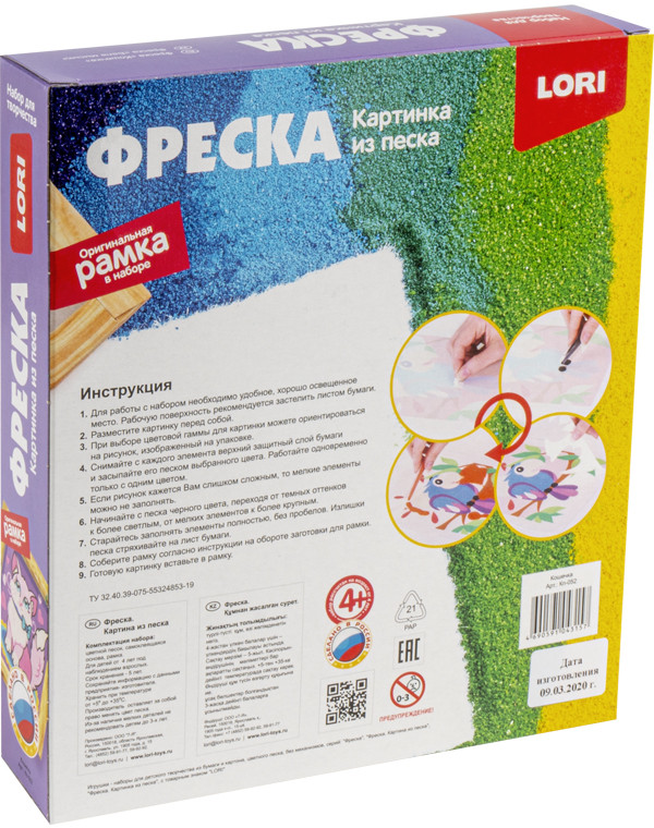 Lori Фреска-картина из песка «Кошечка»В данный момент этот товар отсутствует в продаже. Возможно, у нас найдется аналогичный или похожий товар здесь. Серия: Фреска При помощи оригинальной основы и специального цветного песка ребенок сможет без труда создать необычную «песчаную картину», которая будет отличным украшением комнаты или кабинета и объектом гордости Вашего ребенка. Песок приклеивается на самоклеящуюся бумагу, где нанесен цветной контур рисунка, вырезанный на плоттере. |