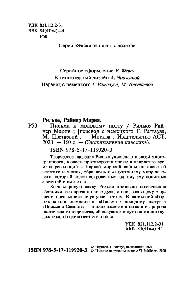 💳 Оплатить за товар можно при получении 🇰🇿 Есть бесплатная доставка по Казахстану от 1 дня 🎁 Копите бонусы с каждой покупки Серия: Эксклюзивная классика Творческое наследие Рильке уникально в своей многогранности, в своем противоречии эпохе: в непростые времена революций и Первой мировой войны он писал об эстетике и мечтах, обращаясь к «внутреннему миру человека, который полон сокровенных, одному ему понятных значений и смыслов». |