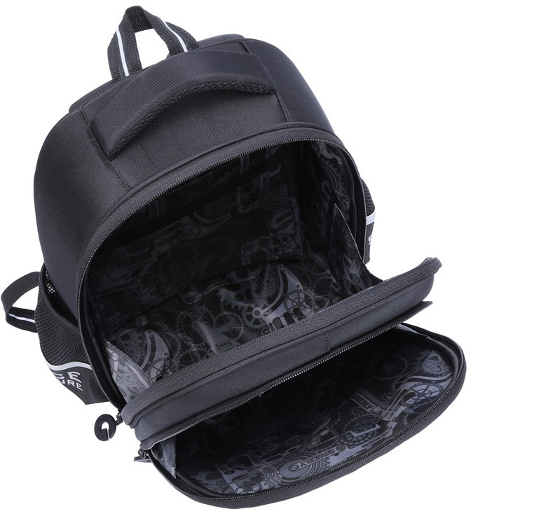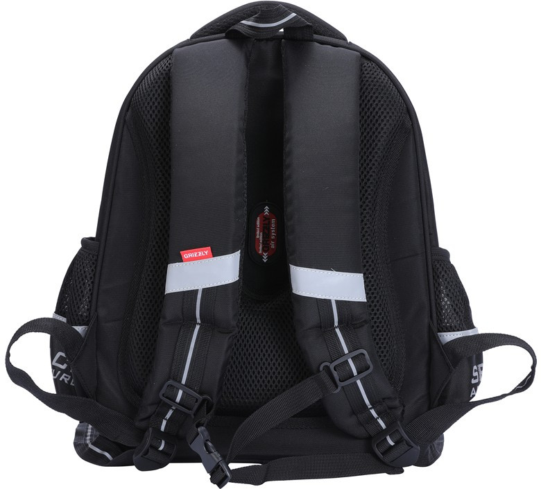Школьный рюкзак «Grizzly» формованный (хорошо держащий форму), с двумя отделениями; тремя отделами в основном отделении, внутренними карманами для ручек, телефона, мелочей и тетрадок и держателем для ключей в переднем отделении; укрепленными лямками и спиной (лямки регулируются по высоте); с ручкой для переноски.