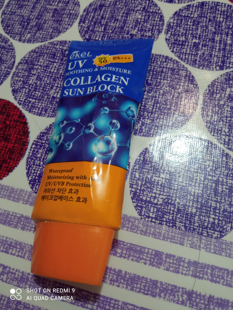 Ekel Крем для лица солнцезащитный с коллагеном SPF 50 PA+++В данный момент этот товар отсутствует в продаже. Возможно, у нас найдется аналогичный или похожий товар здесь. Многофункциональный солнцезащитный крем с коллагеном Soothing & Moisture Collagen Sun Block SPF50 PA+++ поможет защитить кожу лица, а также открытые участки тела от повреждений ультрафиолетом. Крем надежно блокирует UVA и UVB лучи, предупреждает появление покраснений, ожогов, фотостарения. При нанесении успокаивает и увлажняет кожу, дарит чувство свежести и комфорта. |