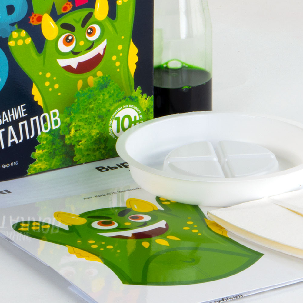 Хороший набор, кристаллы выросли, детям было интересно (покупали зелёный набор).