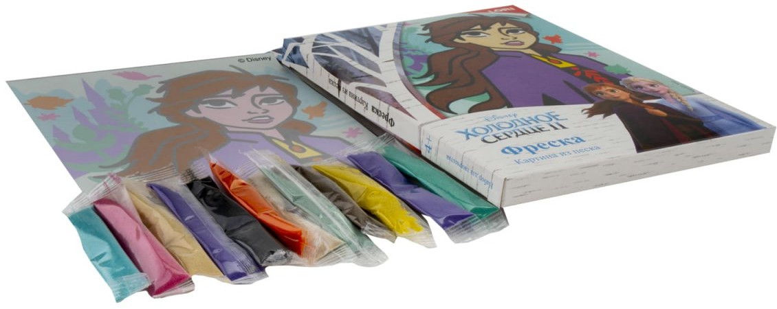 При помощи оригинальной основы и специального цветного песка ребенок сможет без труда создать необычную «песчаную картину», которая будет отличным украшением комнаты или кабинета и объектом гордости Вашего ребенка. Песок приклеивается на самоклеящуюся бумагу, где нанесен цветной контур рисунка, вырезанный на плоттере.