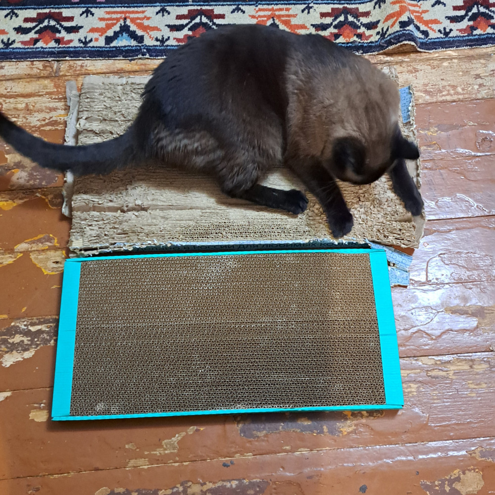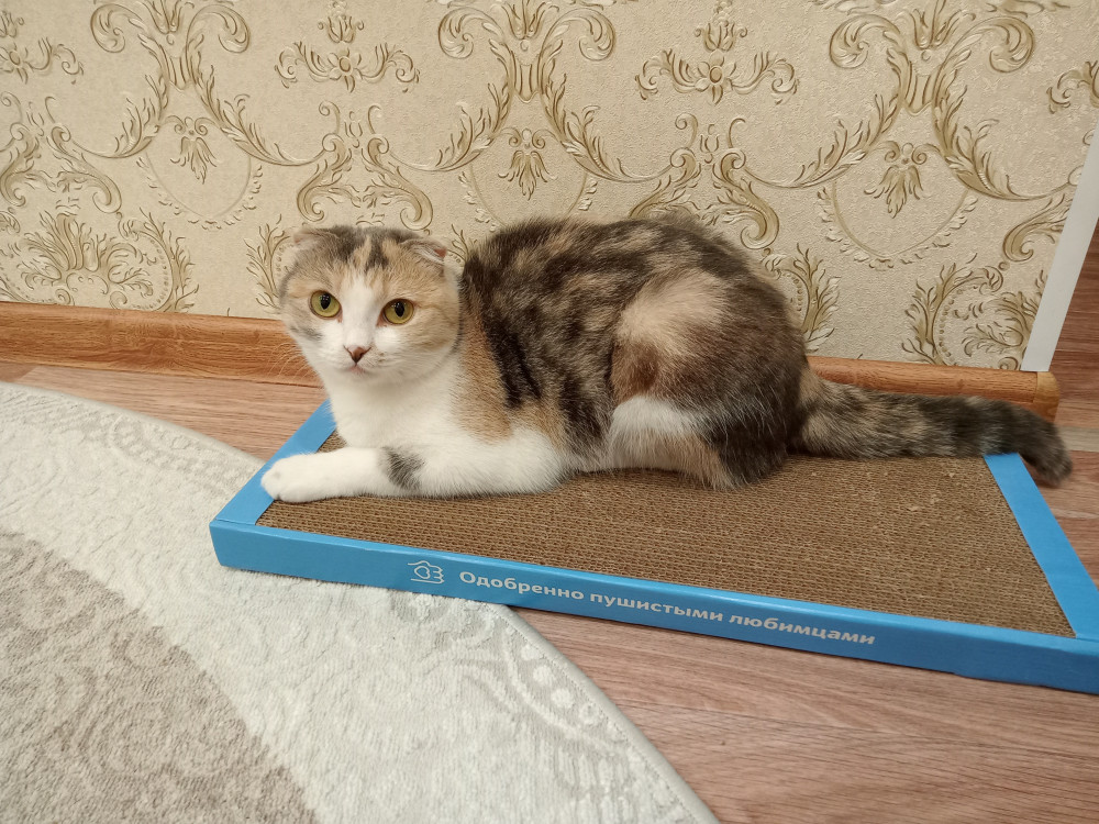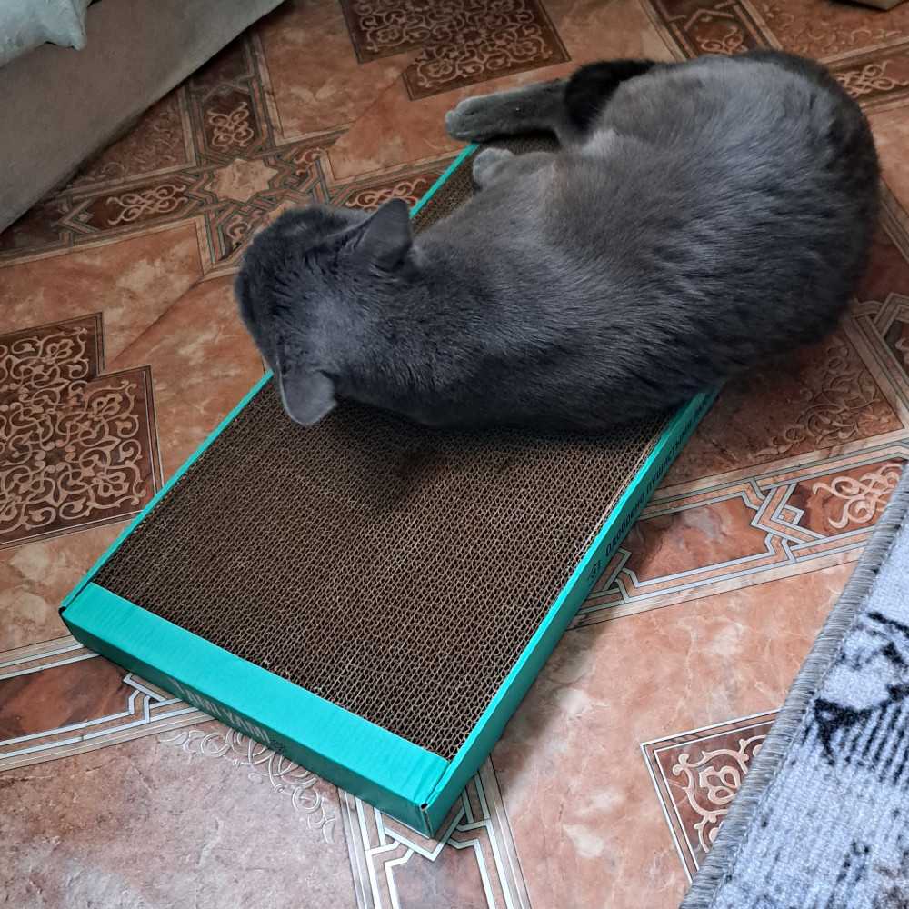 Спасибо за быструю доставку. А вот сама когтеточка оказалась не интересна нашему кому, пока распаковывала упаковкой интересовался, он любитель целлофана, ни как лежанка, ни как когтеточка не используется. Качество понравилось, поэтому ставлю пять звёзд, а то что кот не оценил, так это его личный выбор😅